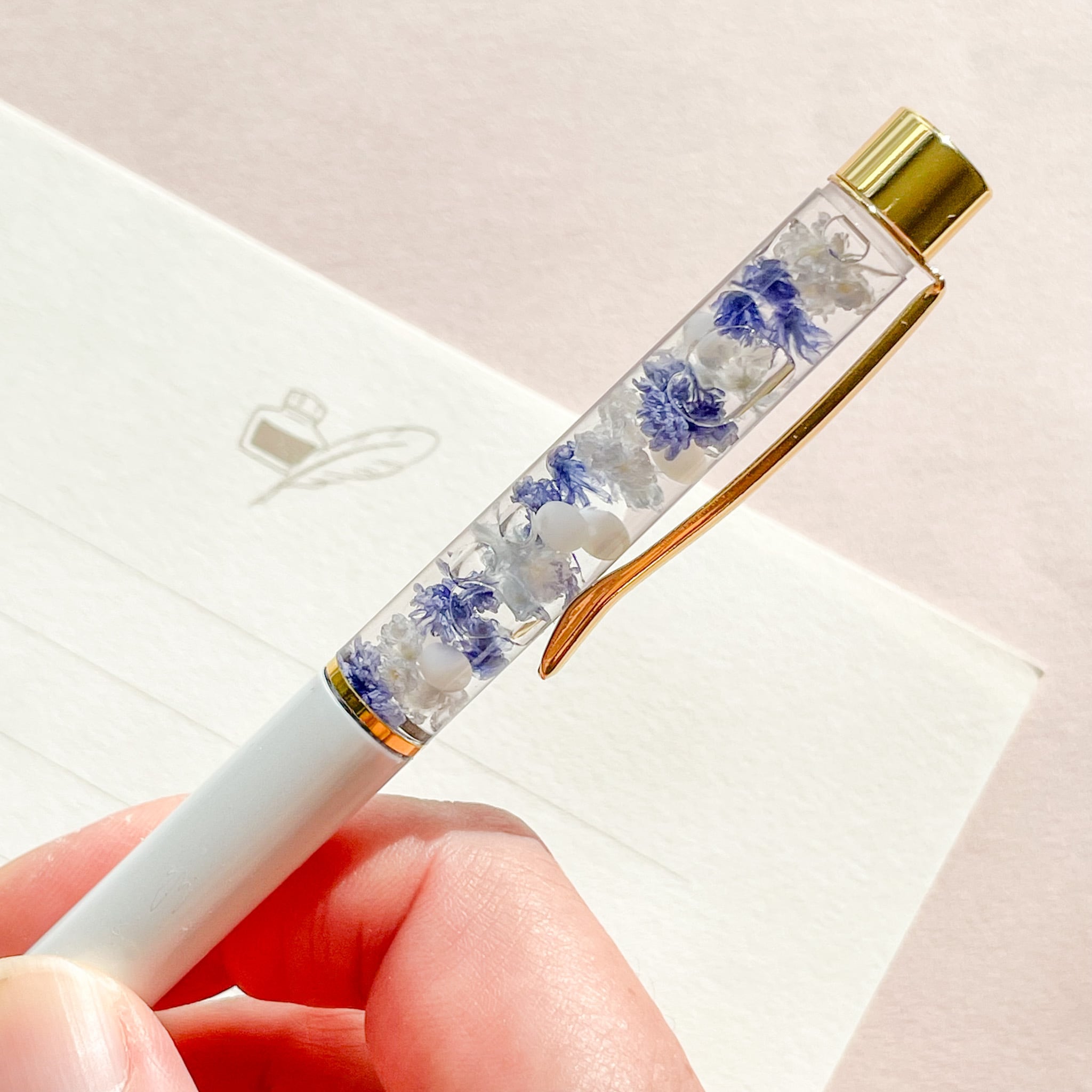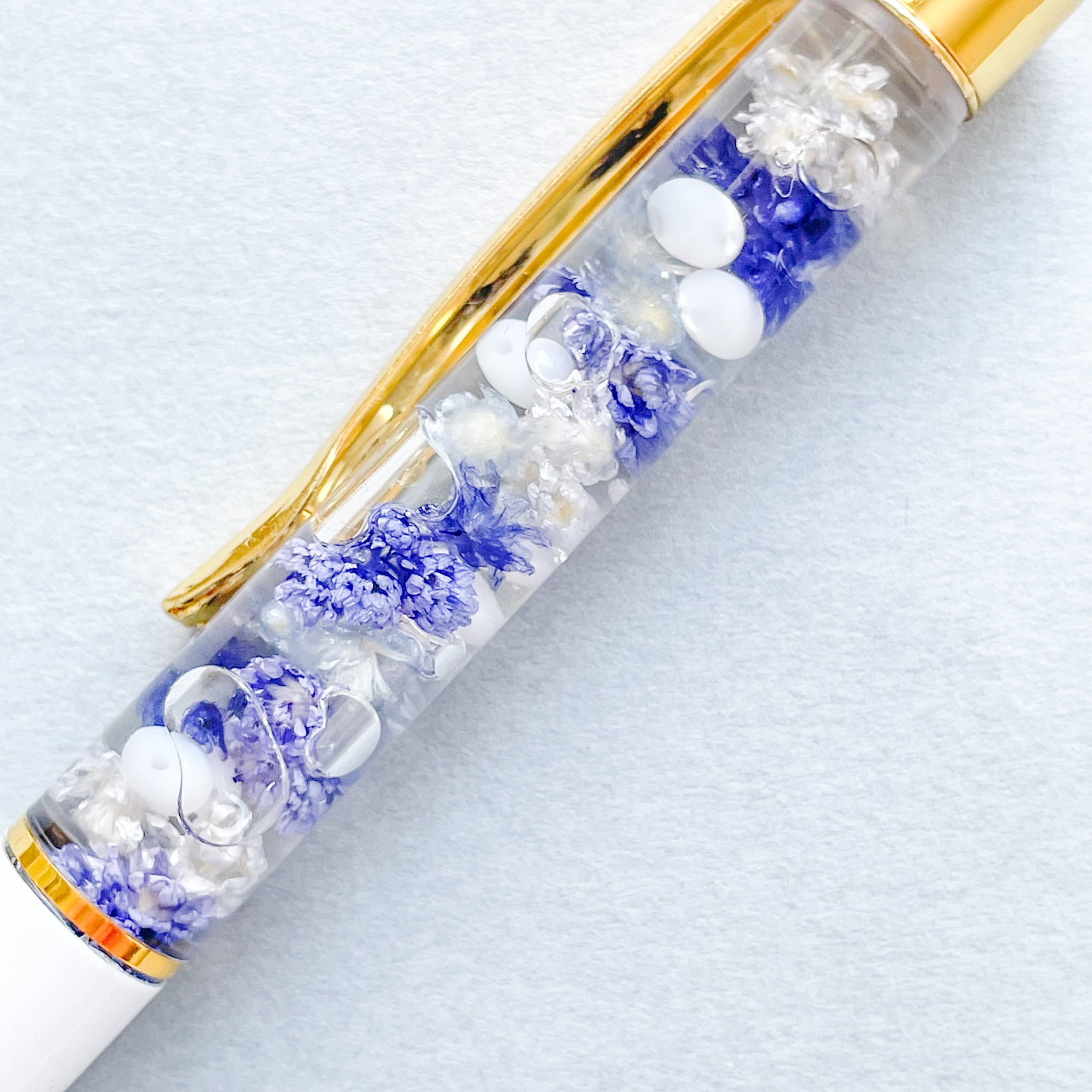 【送料無料】ハーバリウムボールペン マザーオブパールとブルーのお花