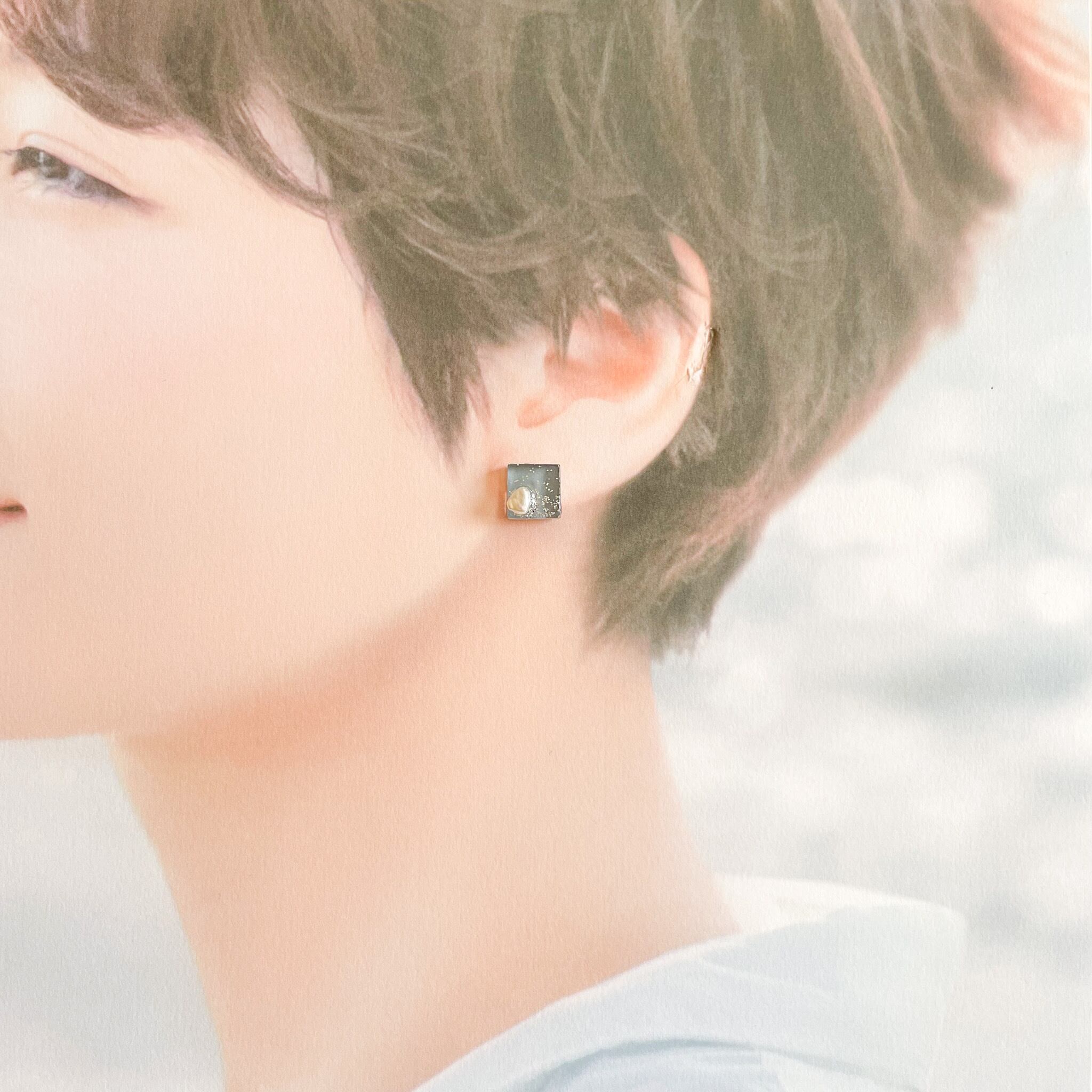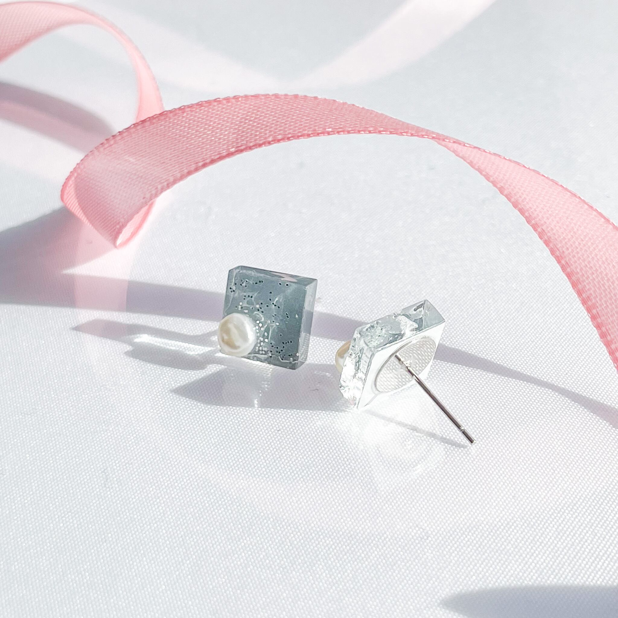 グレーのスクエアガラスピアス/イヤリングです。