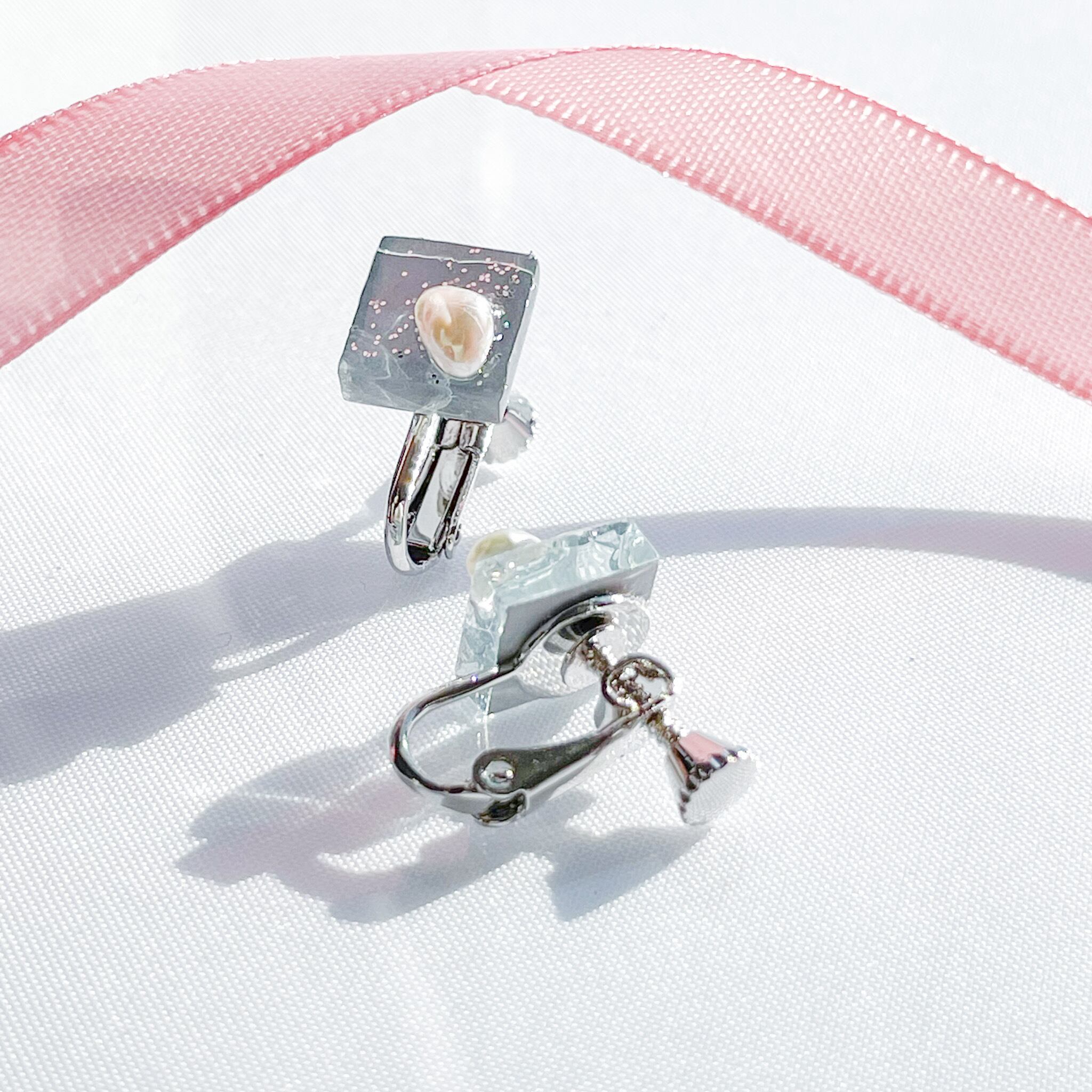 淡水パールとシルバーラメを合わせました。