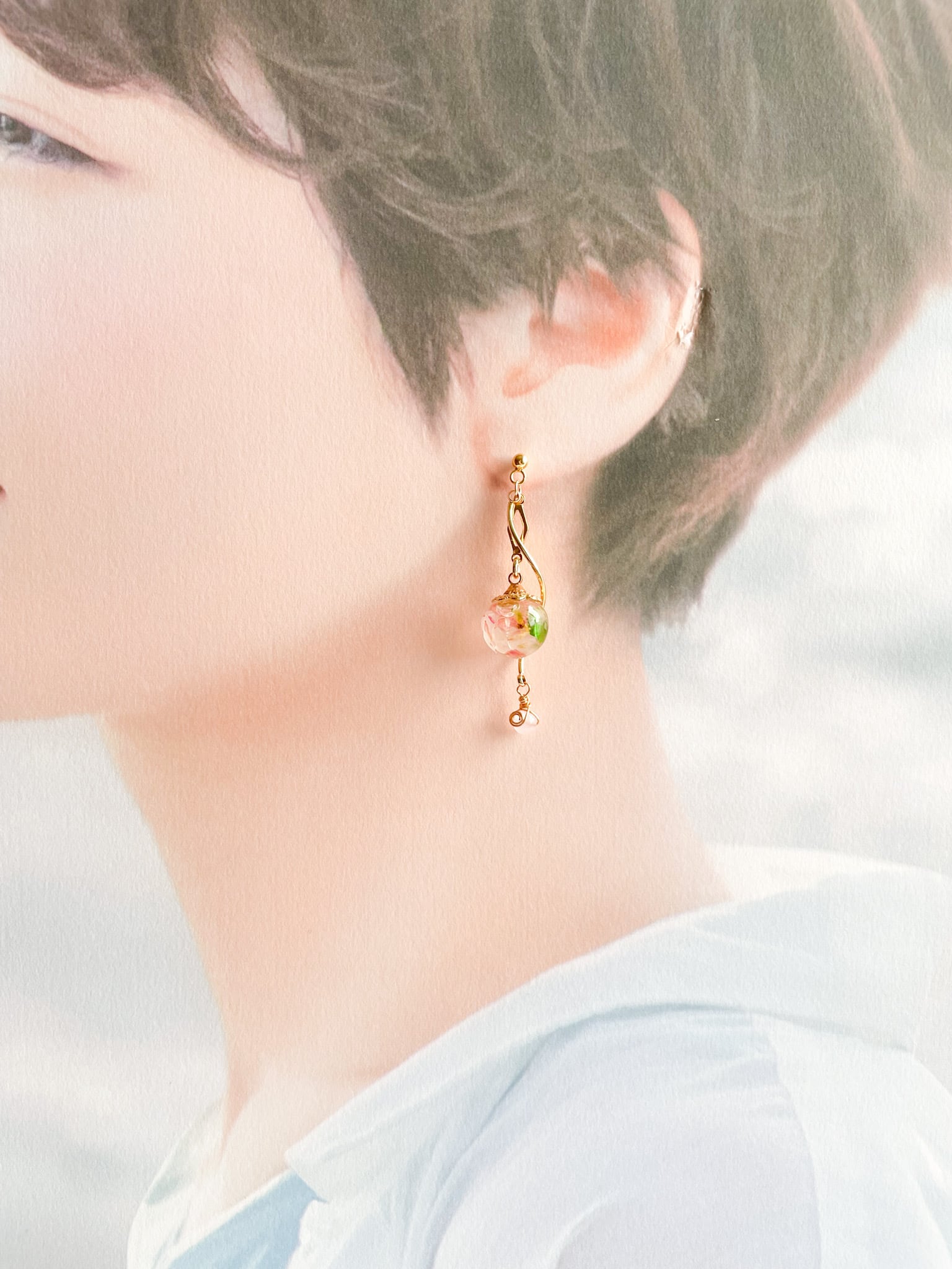 全体の重さ :ピアス片耳約2g=1円玉2枚